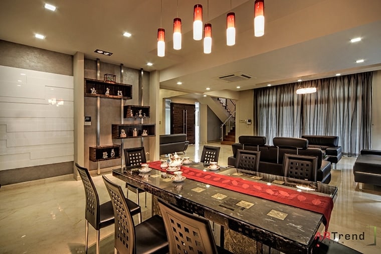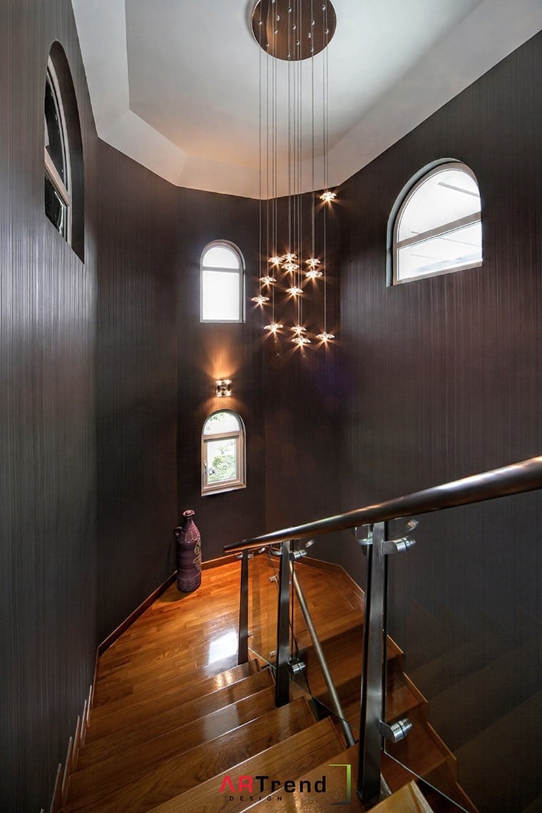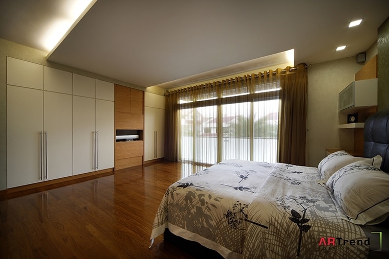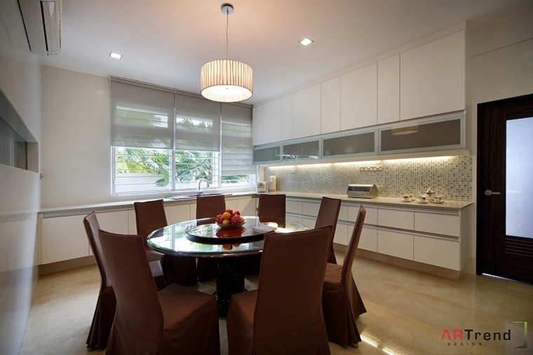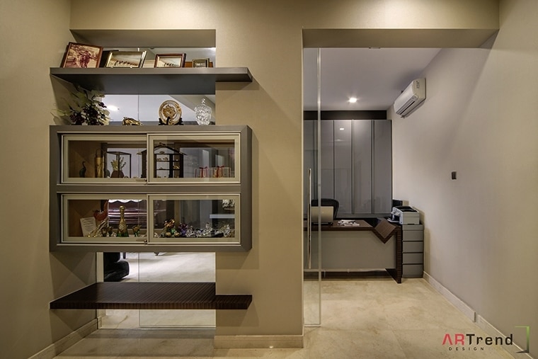 A muted palette of grays, taupes and browns give this landed property a down-to-earth impression.